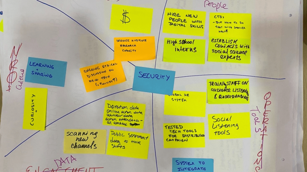 But there are flaws in this model. As anyone who’s sat in a small breakout group with a pile of Post-It notes on their lap has experienced, the contributions in these moments are a mixed bag. Forcing big concepts or complex problems into a few words on a tiny sheet of paper is hard. Nuance and detail are lost. People relate to concepts that fit onto a Post-It in different ways. It’s not clear to people outside the group what the full idea was – only survived on the note.